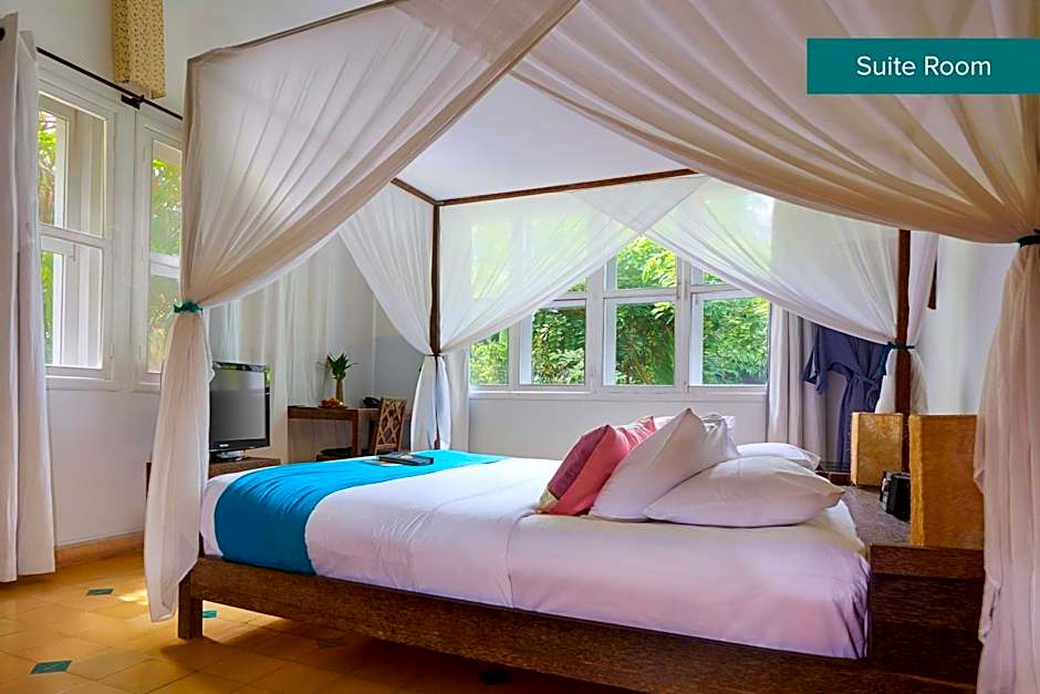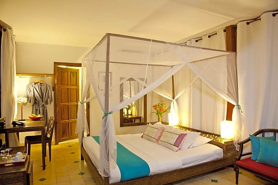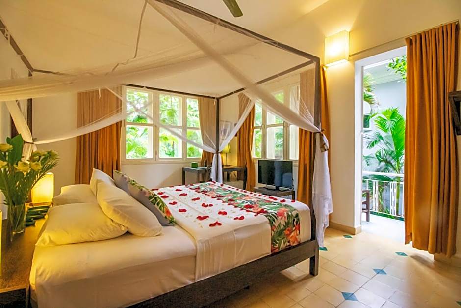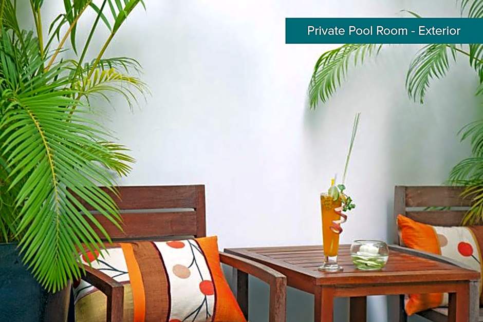 This room offers air conditioning and a fan option. It has a private balcony that opens up to views of the pool. It comes with a flat-screen TV with cable channels. Tea/coffee making facilities and a mini-bar are provided. The private bathroom includes a hairdryer as well we hot/cold shower facilities.