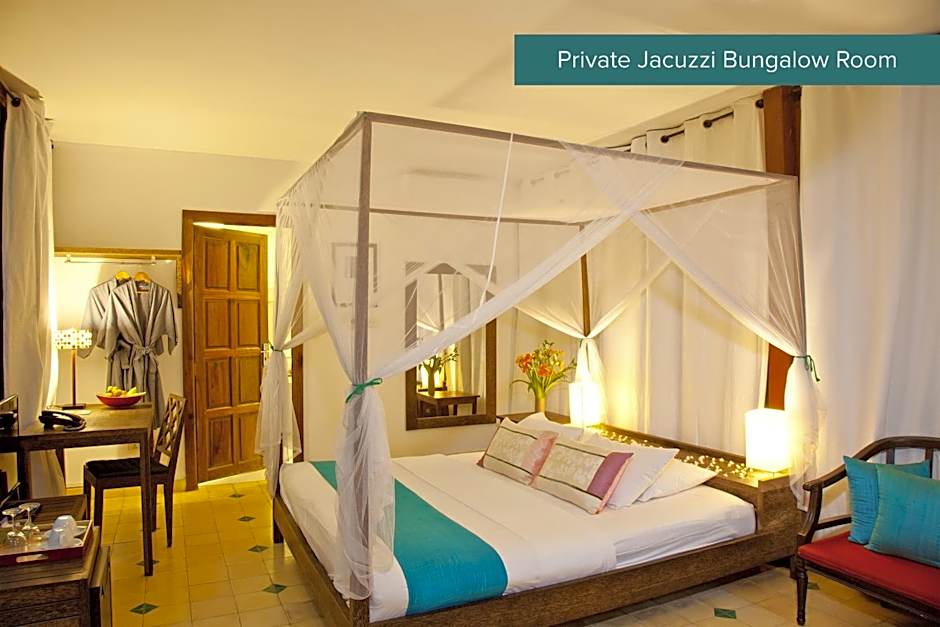 This wood or glass bungalow offers air conditioning and a fan option that opens up to the garden. It comes with a flat-screen TV with cable channels. Tea/coffee making facilities and a mini-bar are provided. A private bathroom includes separate hot and cold shower facilities, a spa bath and a hairdryer.